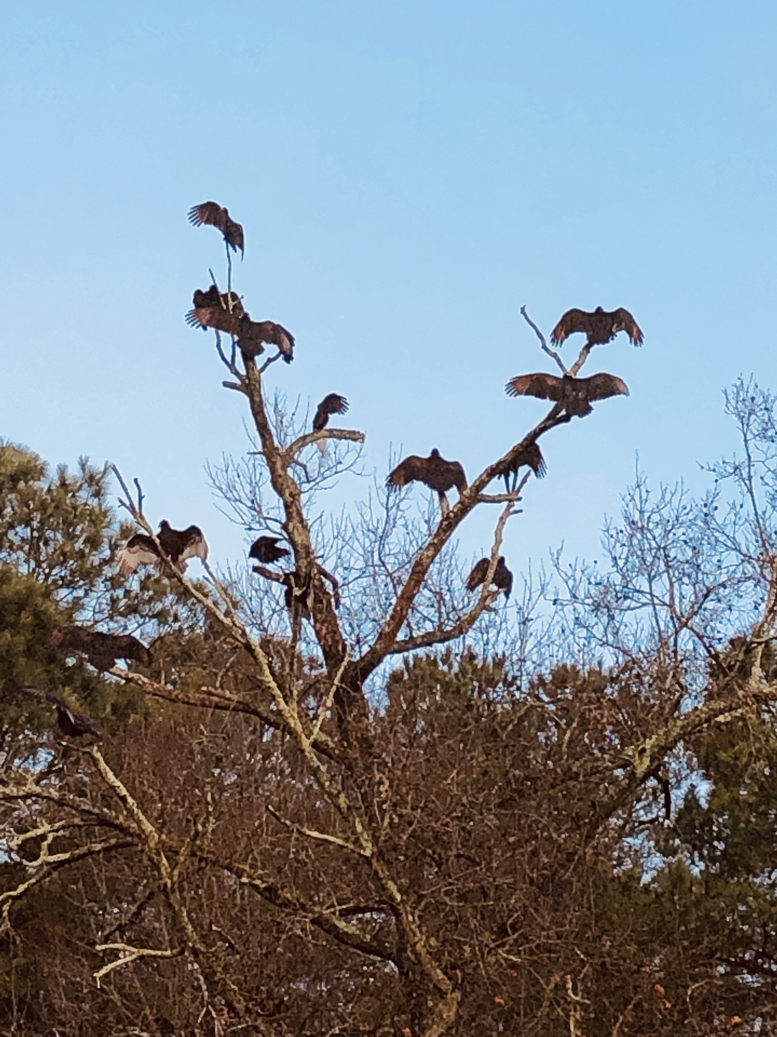 I do wish they would they wouldn’t air their wings in the dead tree opposite our home. I do hope they’re not trying to send me a message.