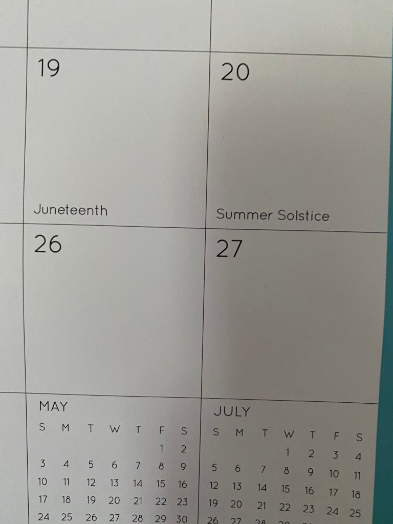 So, today I looked at our active working calendar and there on the date block of June 19, 2020 was the word “JUNETEENTH.” I save calendars, along with my Journals, I can go back to the year 2014. No where on any of these previous years was 19 June designated “JUNETEENTH.”